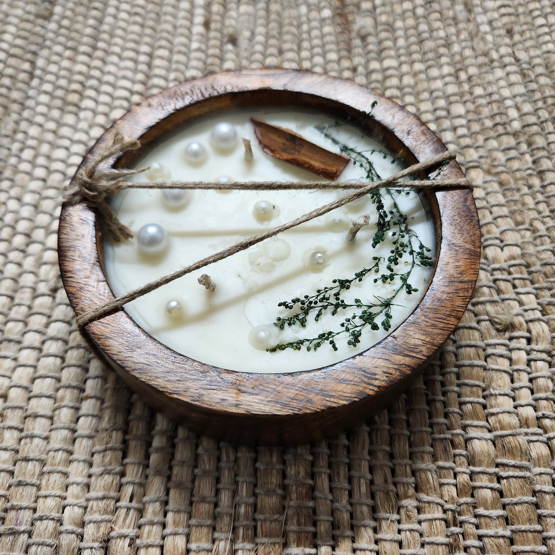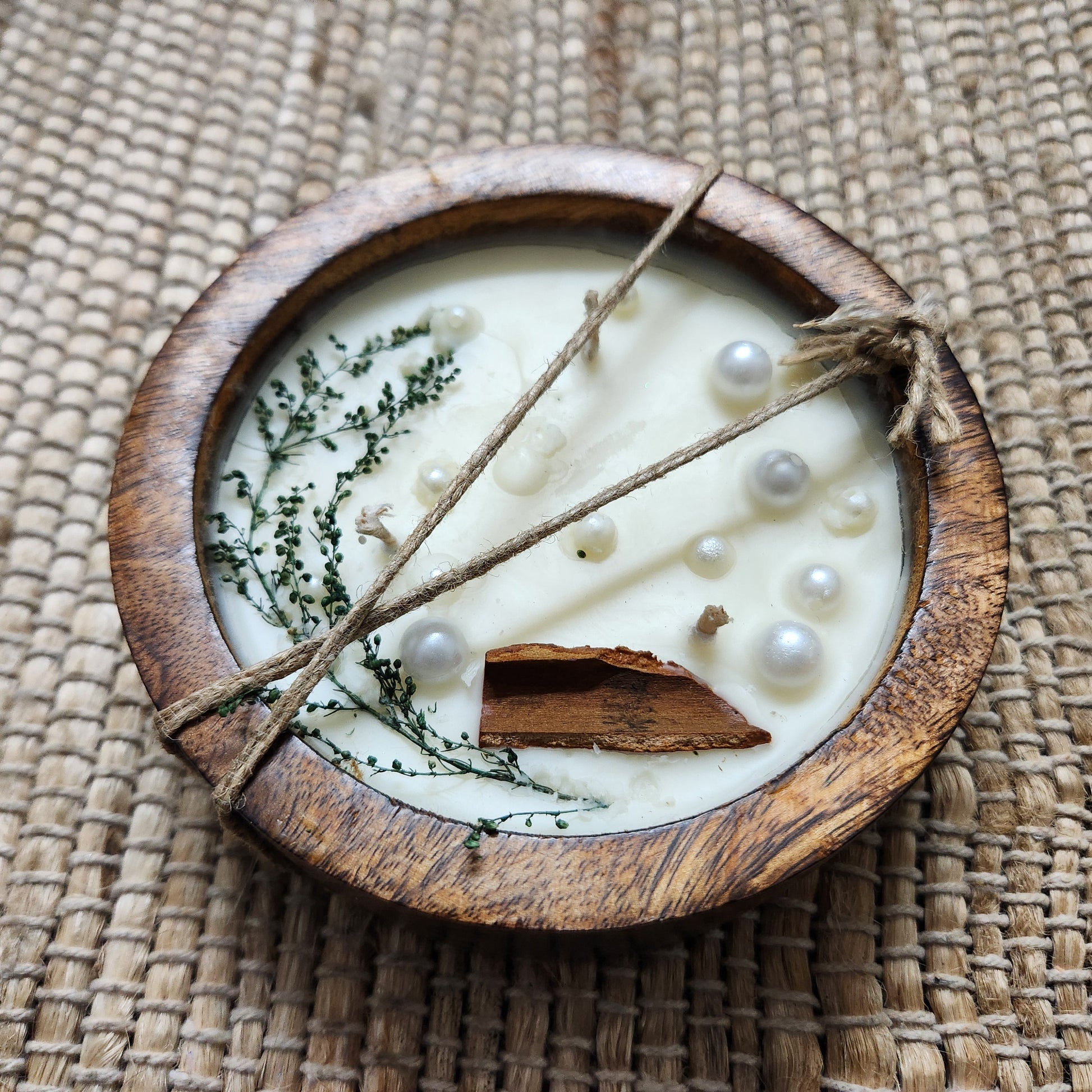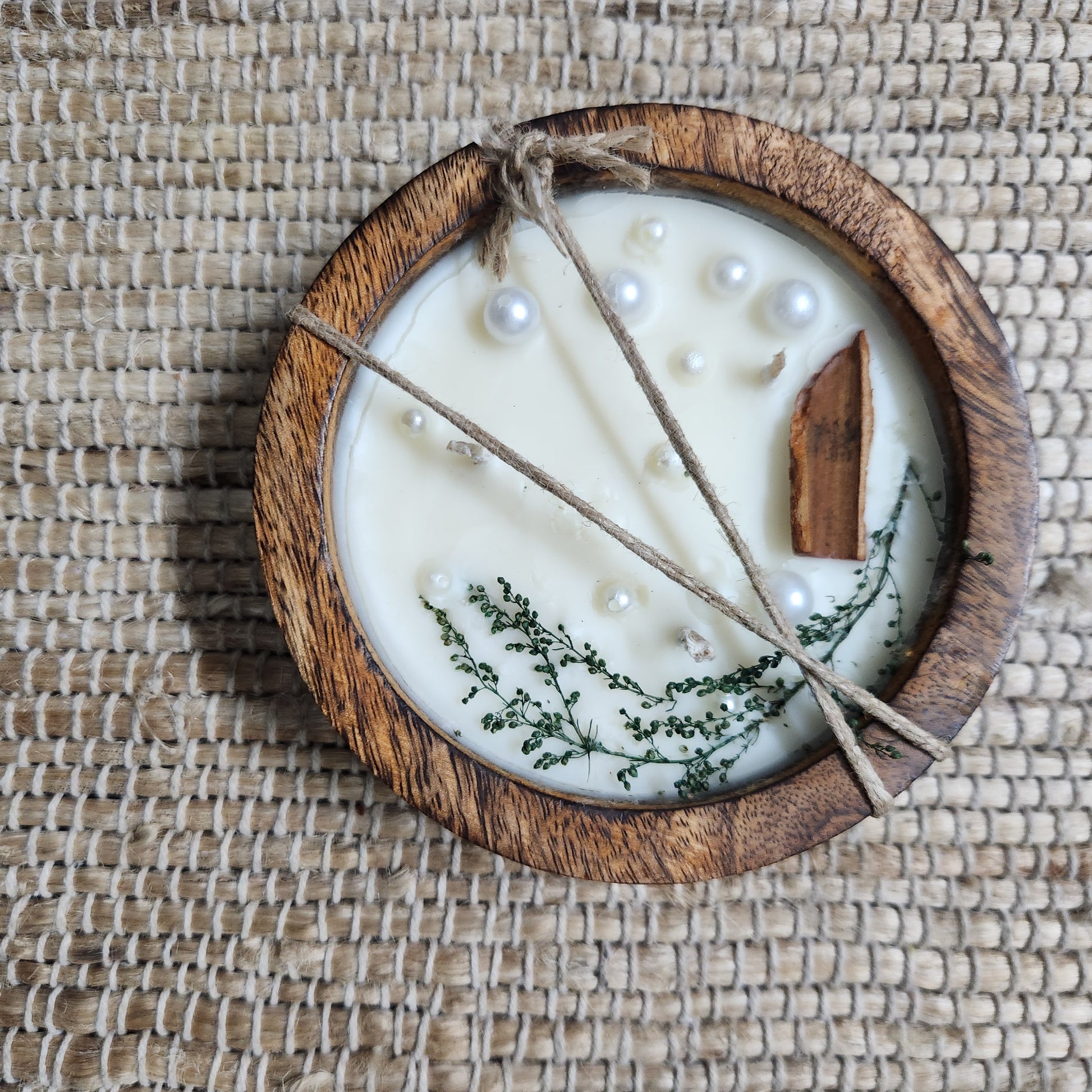 Let nature meet elegance in our Forest Pearl Candle. Hand-poured in a rustic wooden bowl, this botanical candle is adorned with real dried herbs, delicate faux pearls, and a touch of cinnamon bark—capturing the essence of a peaceful forest morning.